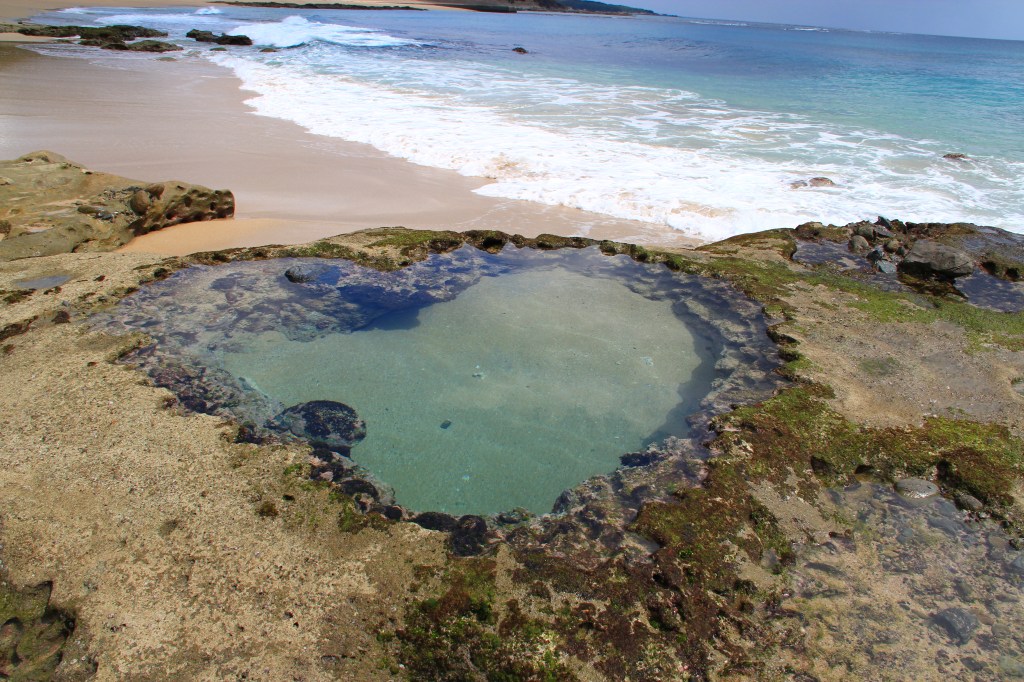 空港から比較的アクセスが良いビラビーチにある干潮時にのみ現れるハート型の潮だまり。沖縄の古宇利島のようなハートロックではありません。駐車スペースからすぐの岩場ではなく、奥の岩場の方になります。