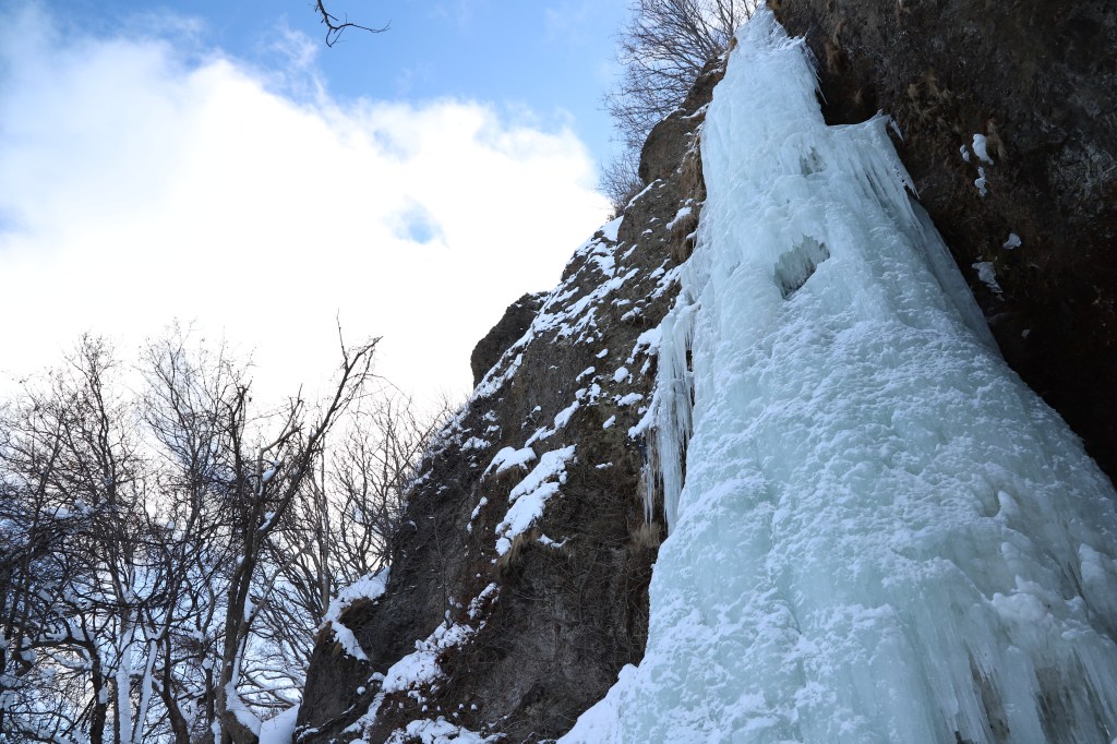 雪の中に足が沈まないようにサポートしてくれるスノーシューを履いてトレッキングをしつつ、滝が凍っている状態 氷瀑を見に行くツアーがあります。スノボウエアがなくてもアクティビティ会社によってはレンタルもあるため安心です。ツアーにもよりますが、雪の中を歩くため、適度な体力は必要かもしれません。時期によっては氷瀑近くには接岸した流氷を見ることができます。(流氷には乗れません!!)