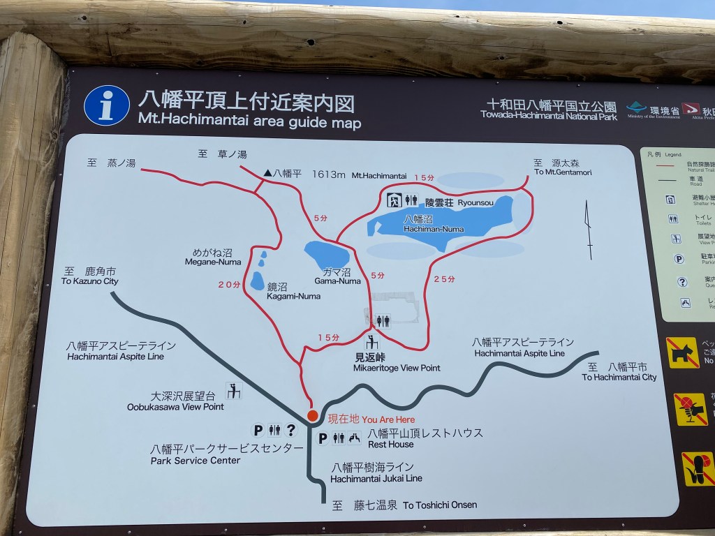 時間に制限がある方は、雪道で滑りやすいため案内図に記載されている目安時間より多めに時間をとっておいた方が良いです。山頂レストハウスでは長靴のレンタルもしているようです。