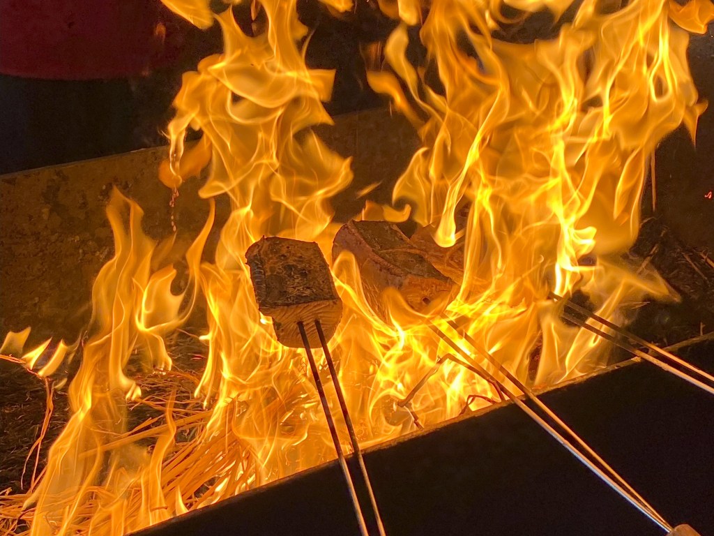 今回は予約なしでも藁焼き体験ができる『土佐タタキ道場』をご紹介します。メニューは定食か単品の2択のみ。入店してすぐに鰹を刺した串が渡されます。簡単に焼き方の説明を受けたのち、すぐに藁焼き!炎の迫力は満点です。焼き終わったら、その場でカットしてもらいテーブルへ。藁焼き直後であるため、温かく皮のカリっと感と赤身のモチモチ感が相まって非常に美味です。