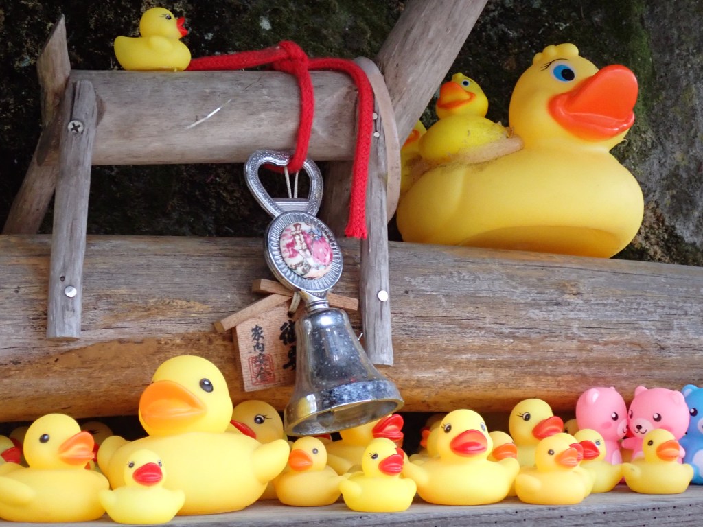 また、石段の上には伊香保神社もあります。ところどころにアヒルさんもいたりします。散策してたくさん歩いた後の温泉は沁みますね。