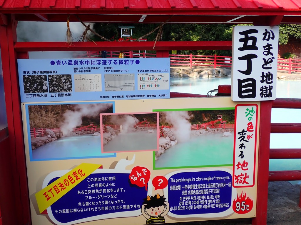 1丁目~6丁目まで他の地獄を集約したような池があります。また、煙の実験や蒸し湯・飲む温泉など体験コーナーも充実。地獄蒸し焼きプリンや温泉たまごの他、醤油プリンなど名物も堪能できます。足湯あり!砂蒸し足湯もあります。充実度一番の地獄です!