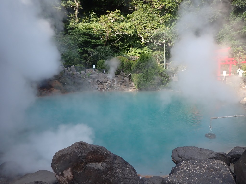 コバルトブルーがきれいな地獄とは思えない色です。お土産屋さんが一番充実している地獄で地獄蒸し焼きプリンや温泉たまご、温泉饅頭も食べることができます。温泉熱を利用し大鬼蓮や睡蓮が栽培されています。足湯あり!*コバルトブルーの温泉ではないです。