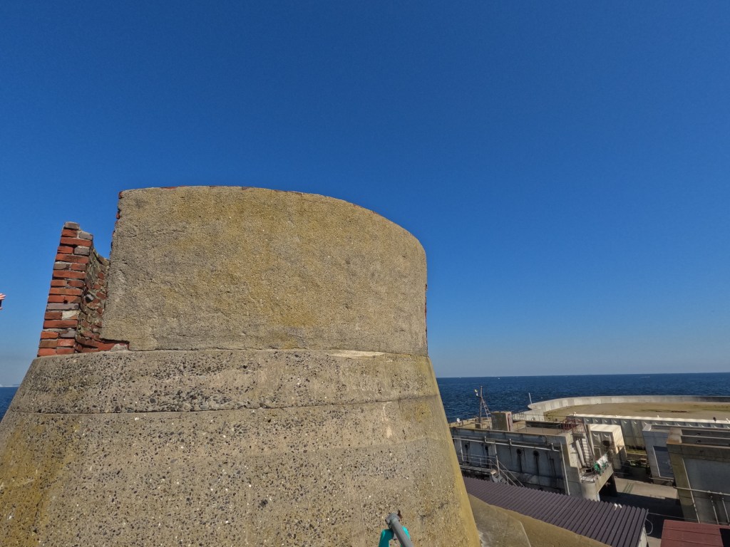 砲台跡に現在は高さ12mの第二海堡灯台があります。間近でみると迫力満点で海堡感がありますね!