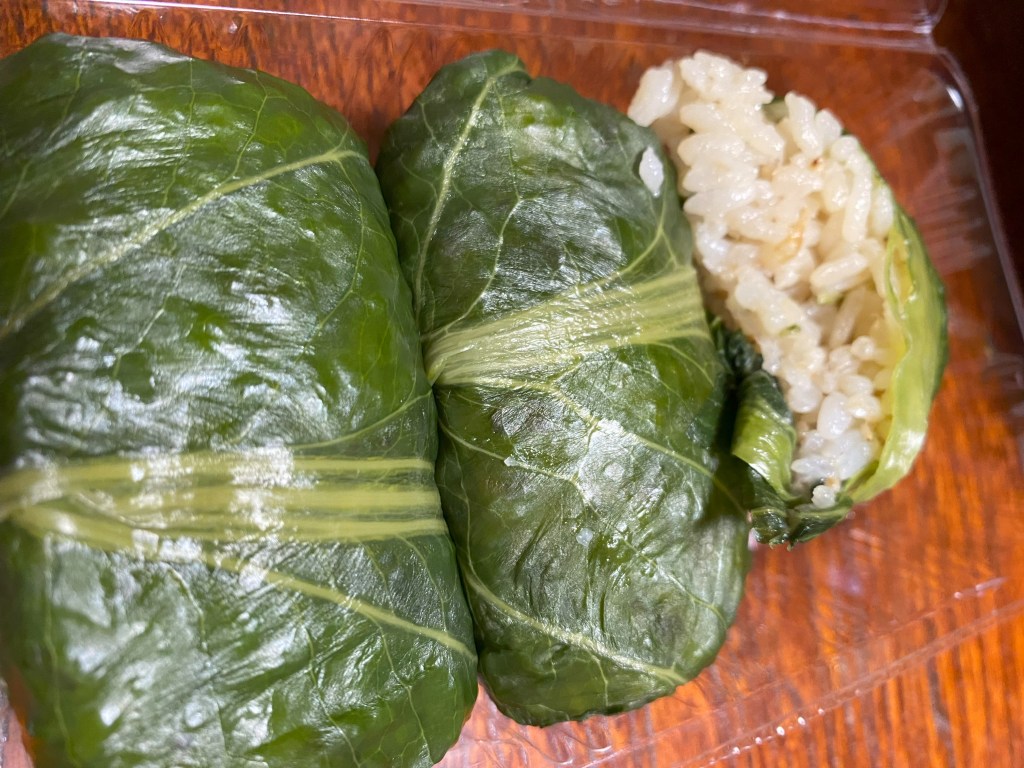 ご飯を高菜漬で包んだおにぎり。名の由来は「目を見張るほど大きい」や「目を見張るほどおいしい」からきているとか。道の駅でも販売されているため、ご賞味ください。