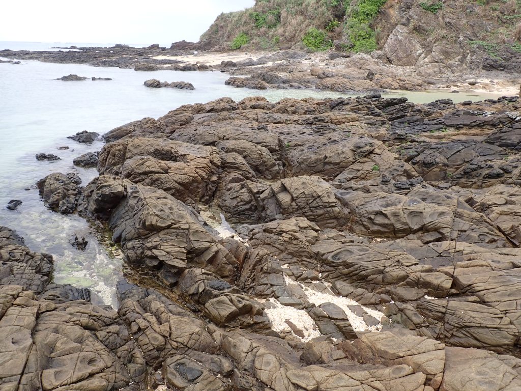 砂浜もありますが、変成斑レイ岩や泥質片岩から成る地質で、島の外周は歩けますが岩場は滑りやすいため足元には気を付けましょう。
