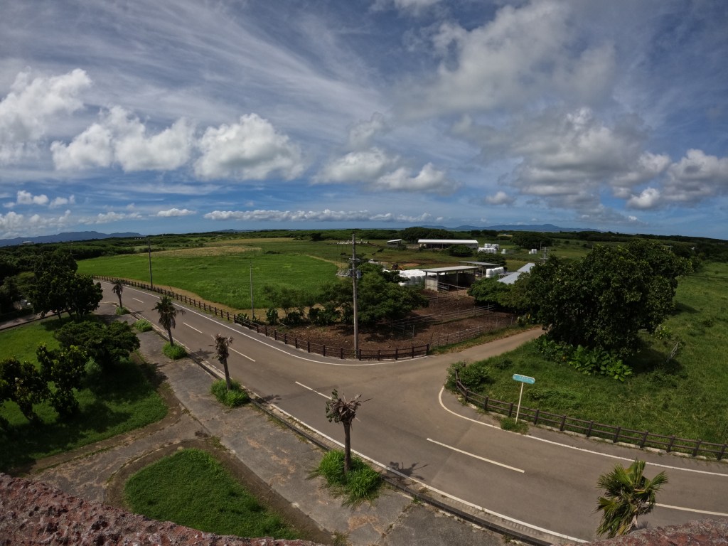 島のほぼ真ん中、黒島小中学校の隣にある展望台で近隣の離島と道100選に選ばれた一本道も見渡せます。