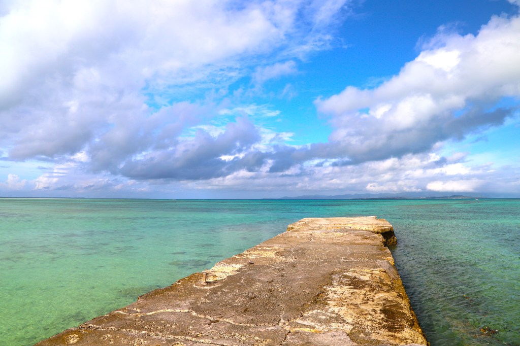 1938年に造られた桟橋で、沖縄日本復帰後もしばらく使用されていました。夕日スポットでも人気です。2005年に国の有形文化財に登録されました。2023年3月に修繕工事が完了し、現在はきれいな桟橋になりました。個人的にはいびつな昔ながら感が風情があってよかったです。