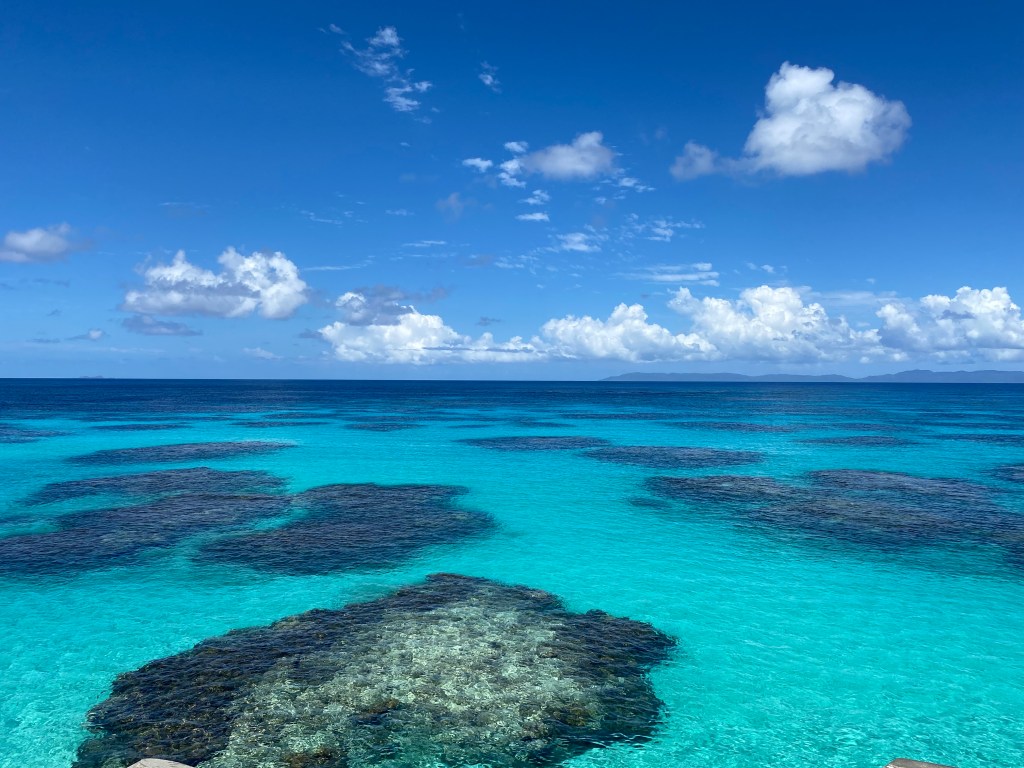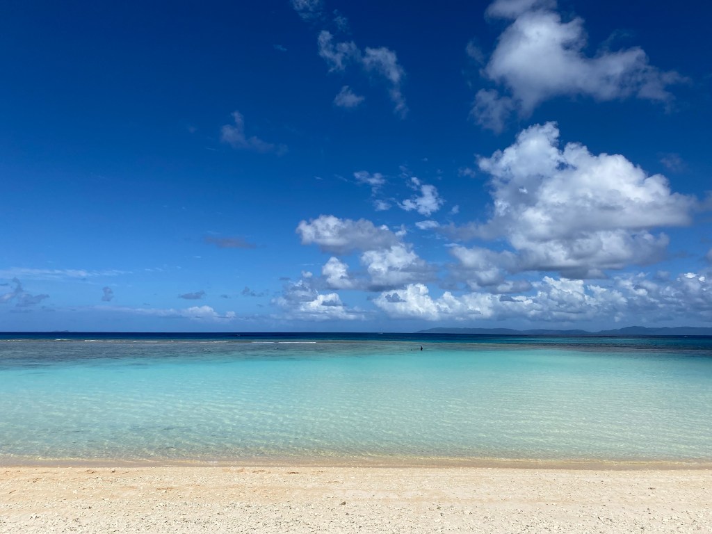 ビーチからの青のグラデーションも美しいですが、堤防から西表を望む青さも絶景です。