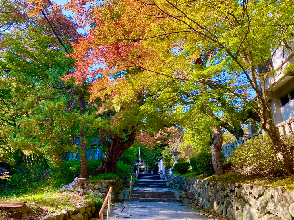 表参道と比べると急な石段ではありません。食後のお散歩がてらならこちらのルートがおすすめ。もちろん、足腰が強くない方でも境内近くに駐車場があるため車でなら参拝は可能です。