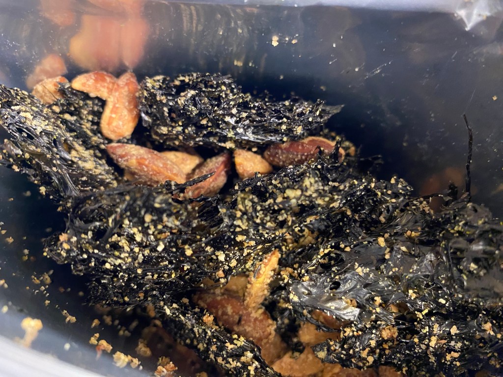 ばらのりとナッツに様々なフレーバーが絶妙!そのまま食べても良し!調味料にしてもよし!