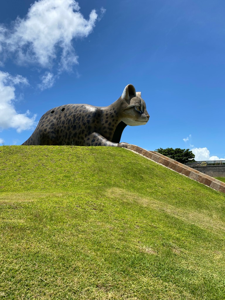 海中道路にあるヤマネコ像と比べると東屋の隣にひっそりとあるため、見落としてしまうことも!