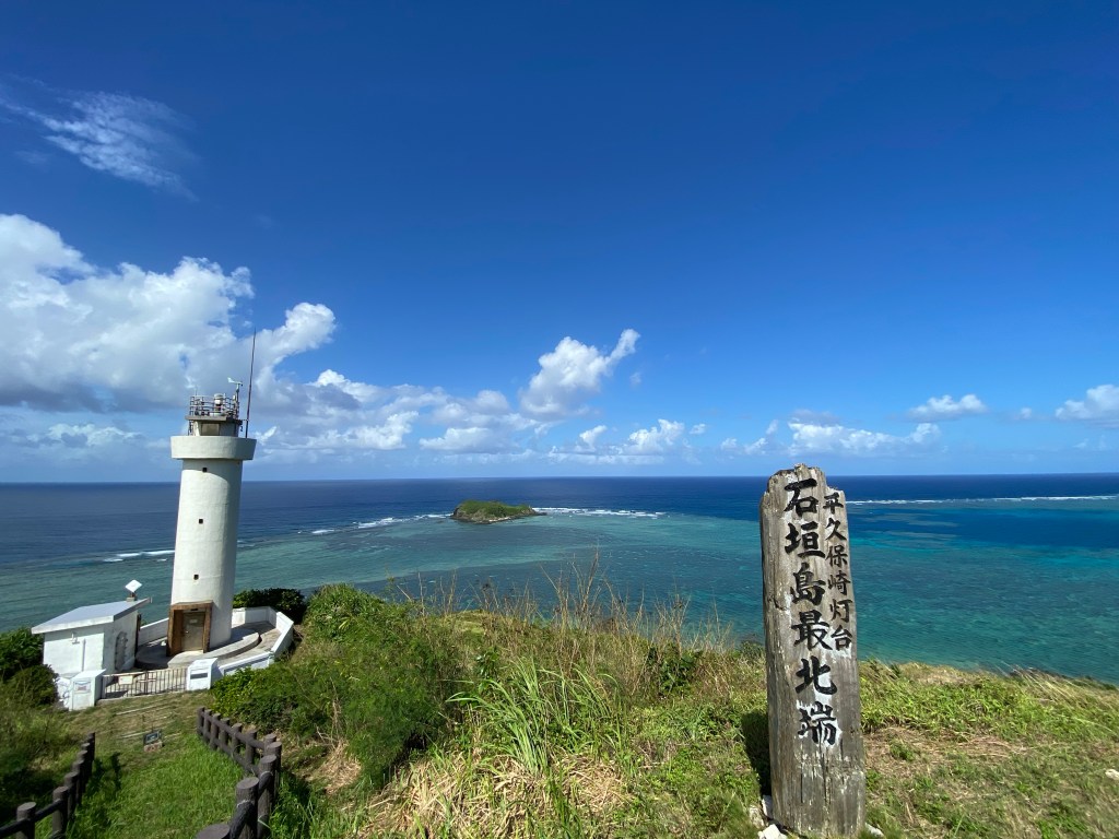 石垣島最北端で高台から眺める白亜の灯台とエメラルドグリーンのコントラストは島一番!道と駐車場が狭いので運転する際はご注意ください。