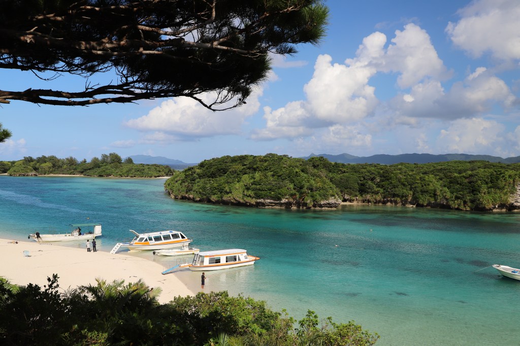 展望台からは白砂と川平ブルーのコントラストが絶景。太陽光の加減や潮位により景色が変わってしまいます。オススメは晴れの日・正午前後の満潮など潮位がある時。大潮の干潮だと一部干上がった状態になってしまいます。
