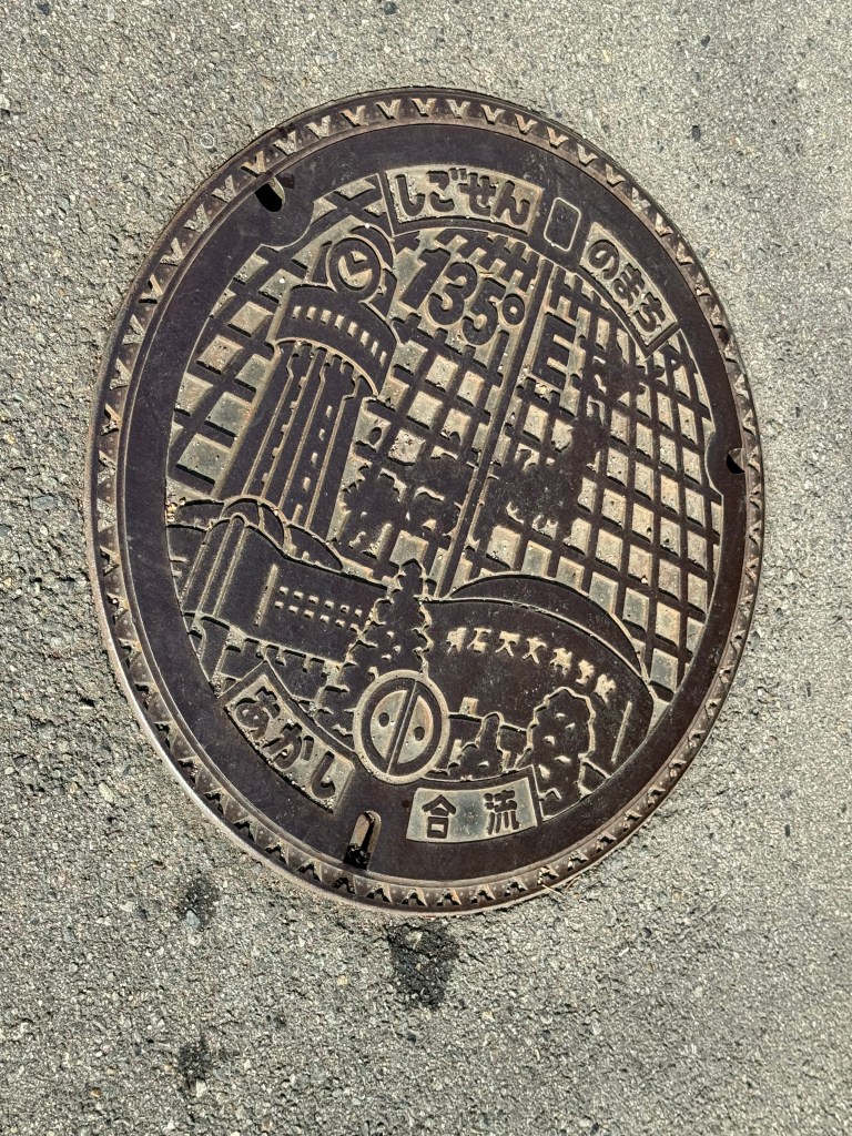マンホールも子午線です。マンホールカードは明石市天文科学館で配布されています。最新情報はホームページなどをご確認ください。