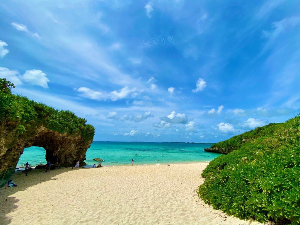 隆起サンゴが波で浸食されてできた巨大岩のアーチは宮古島の定番観光スポット!コバルトブルーの海も美しいビーチです。