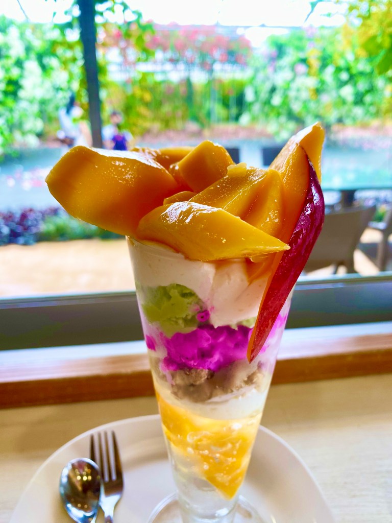 食べれるお店はマンゴーより少ないですが、来間島の『楽園の果実』では下の写真のようなパフェがいただけます。