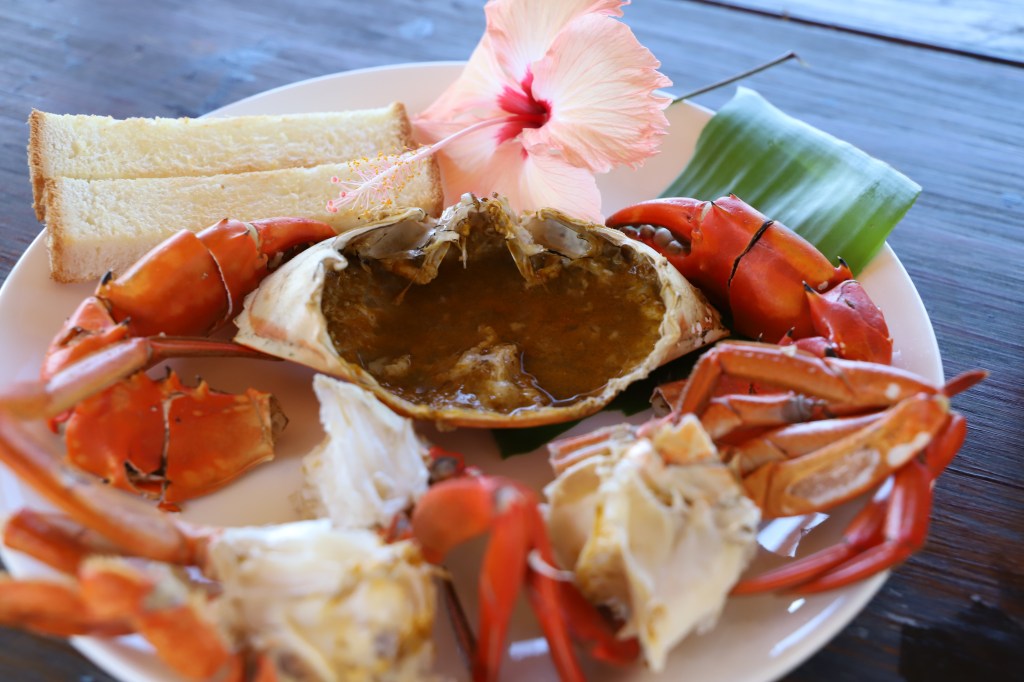 甘く濃厚な旨みがおいしいマングローブガニ。伊良部島の『蟹蔵』で食べることができます。ボイルだけではなく、マングローブガニを使った料理がコースで提供されます。これまたおいしい!要予約です。