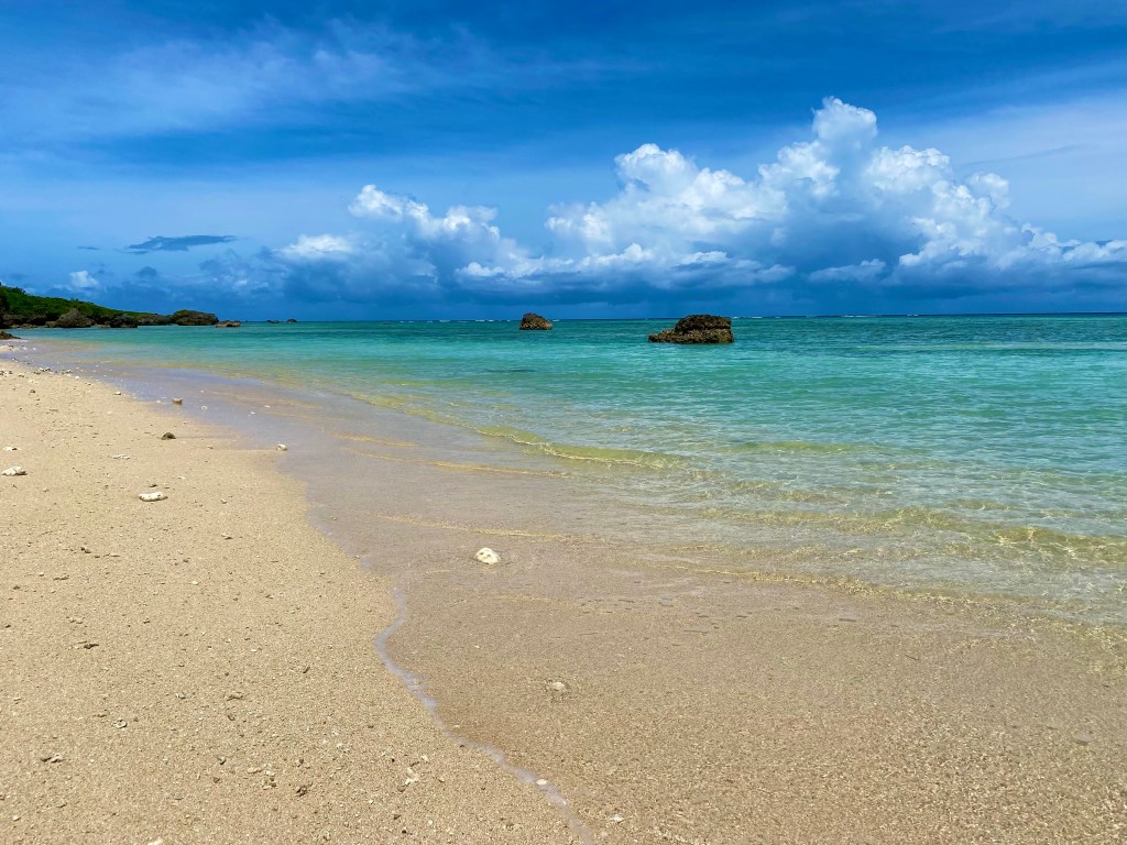 仲筋集落の北側に位置する遠浅なビーチでエメラルドグリーンの海の先には水納島が見えます。遊泳やシュノーケル可能です。