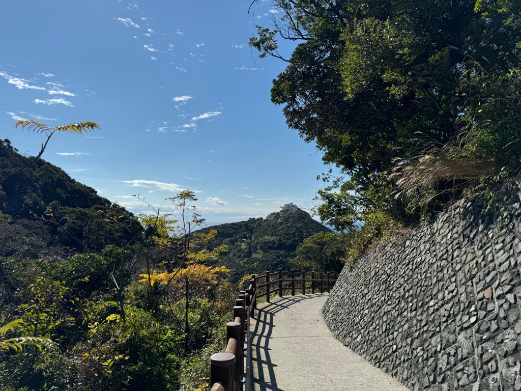 写真のように舗装された緩やかな坂もありますが、一部工事中のところや階段もあります。夏は水分補給できるように持参しましょう。